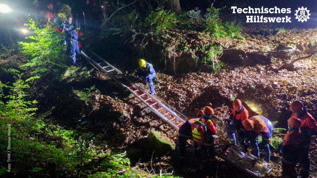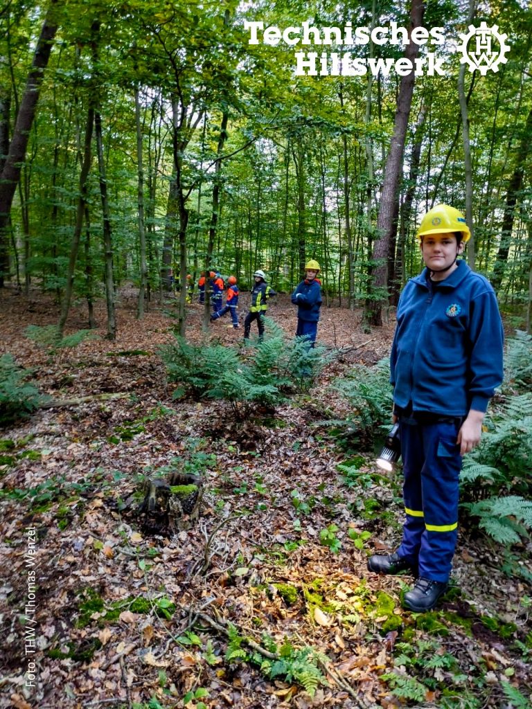 Insgesamt waren ca. 30 Jugendliche und 10 Betreuer beteiligt. Das Übungsszenario sah die Suche nach einer vermissten Person vor — das THW unterstützte die Maßnahme mit einer Drohne und führte die Ausbildung an der schiefen Ebene durch.
