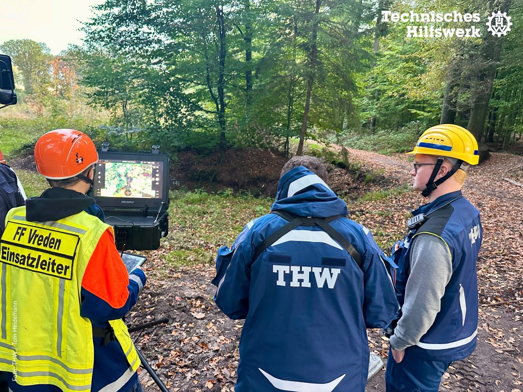 Am 20. Oktober 2025 von 17:00 bis 19:45 Uhr trafen sich die Jugendfeuerwehr Vreden und die THW-Jugend Ahaus im Waldabschnitt „Teufelsschlucht“ in Vreden zu einer gemeinsamen Übung.